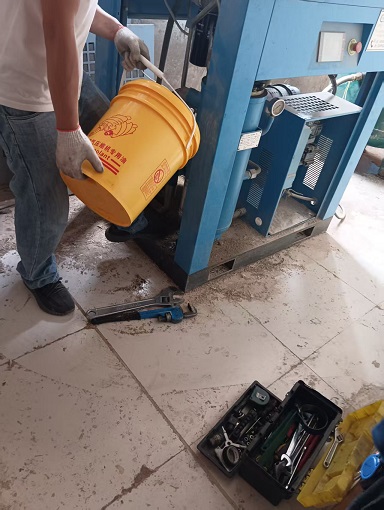 中午11點,我公司空壓機維保工程師團隊人員,到達現場,對空壓機房現場進行簡單的清理后,等到11點30分,用戶下班吃午飯時間,我們正式開始空壓機保養,更換空氣濾清器,機油過濾器,油氣分離器,排放舊油,加注新空壓機油,并對各部件進行檢查,排除一些潛在的故障。最后對設備進行衛生清理,灰塵吹掃,歷時一個小時,空壓機保養工作完成,空壓機又煥發出新的生機,打氣強勁有力。老板看了之后,對我公司專業的空壓機維修團隊很認可。