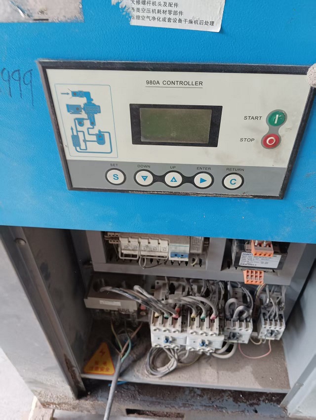 開山空壓機22KW一臺,客戶來電說,昨天還用的好好的,今天早上來送電準(zhǔn)備開空壓機,結(jié)果空壓機控制器面板是黑屏的,沒有任何顯示,無法開機。